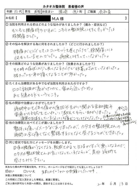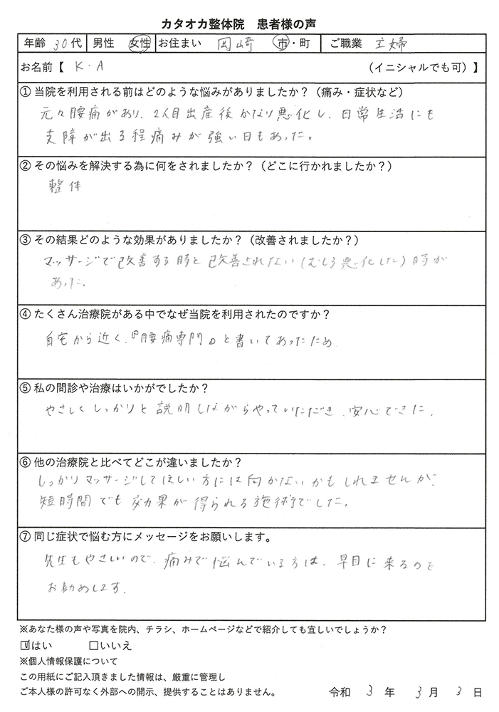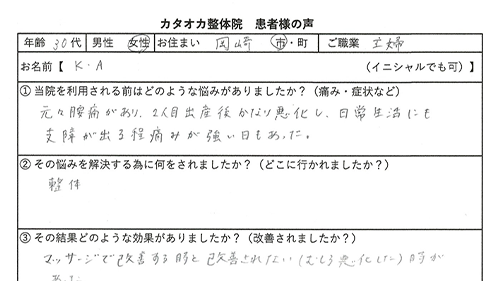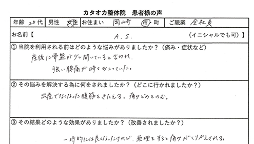 本当に心の底から健康を求める気持ちがあるのなら、カタオカ整体院を私は、是非お勧め致します。