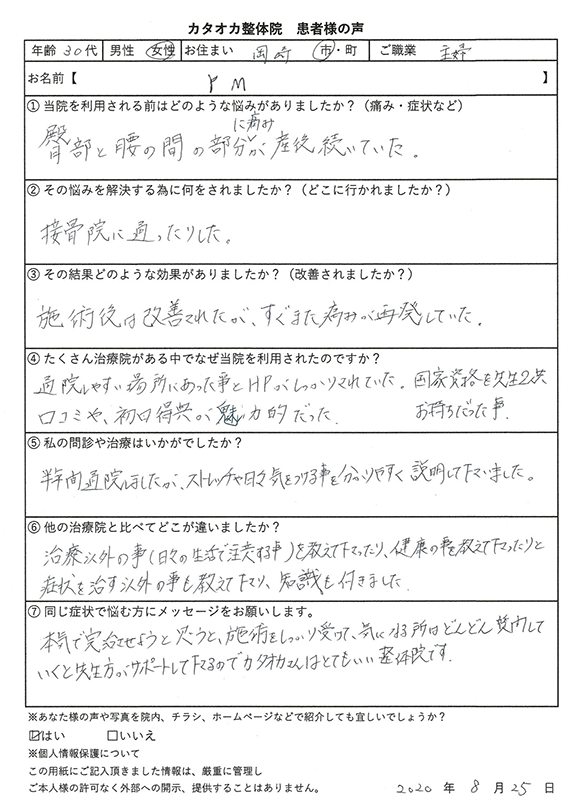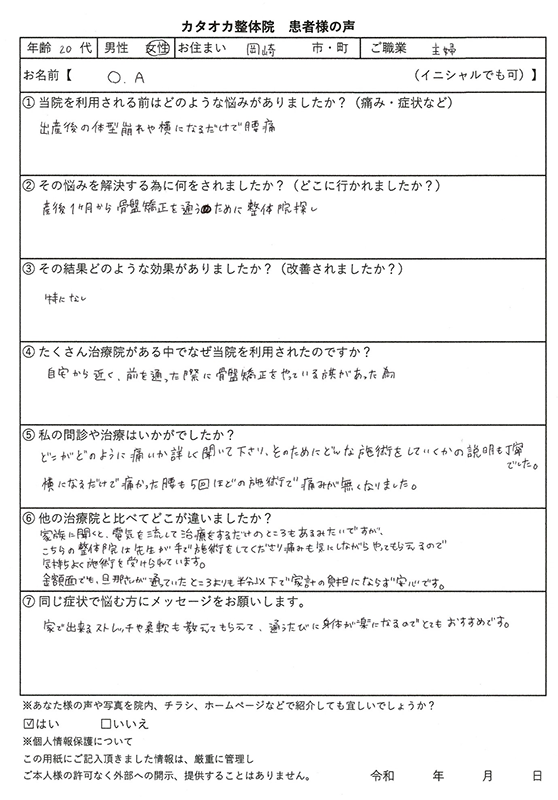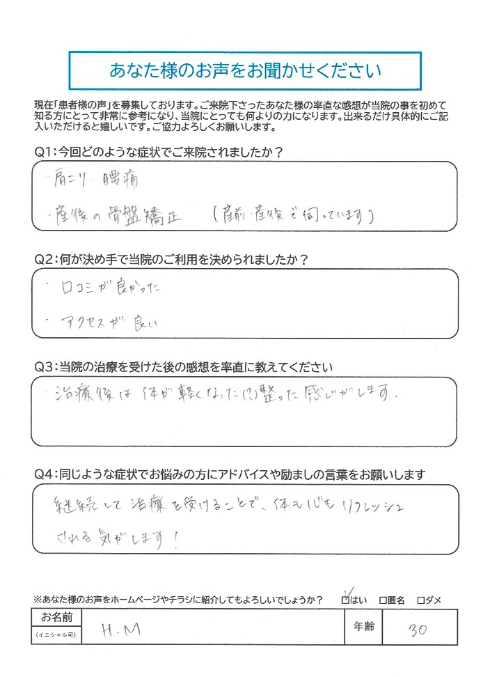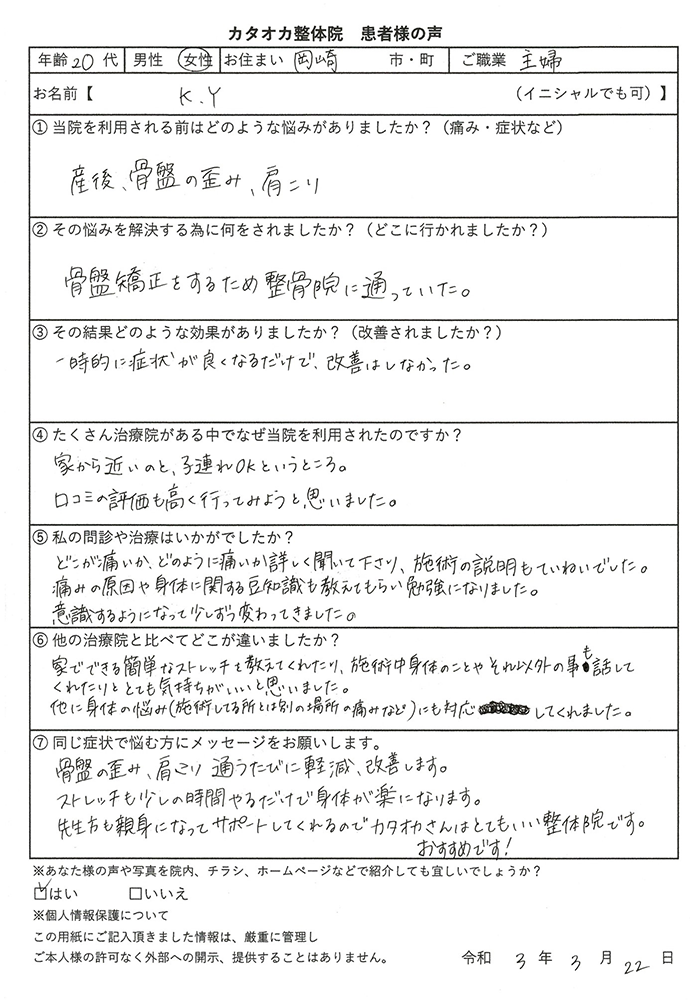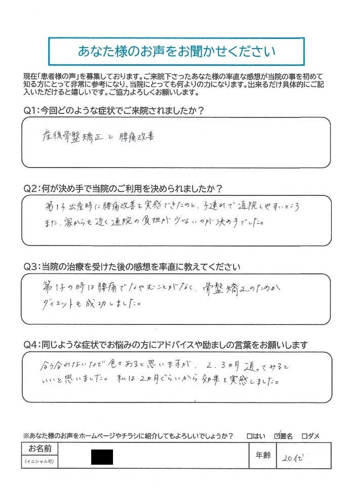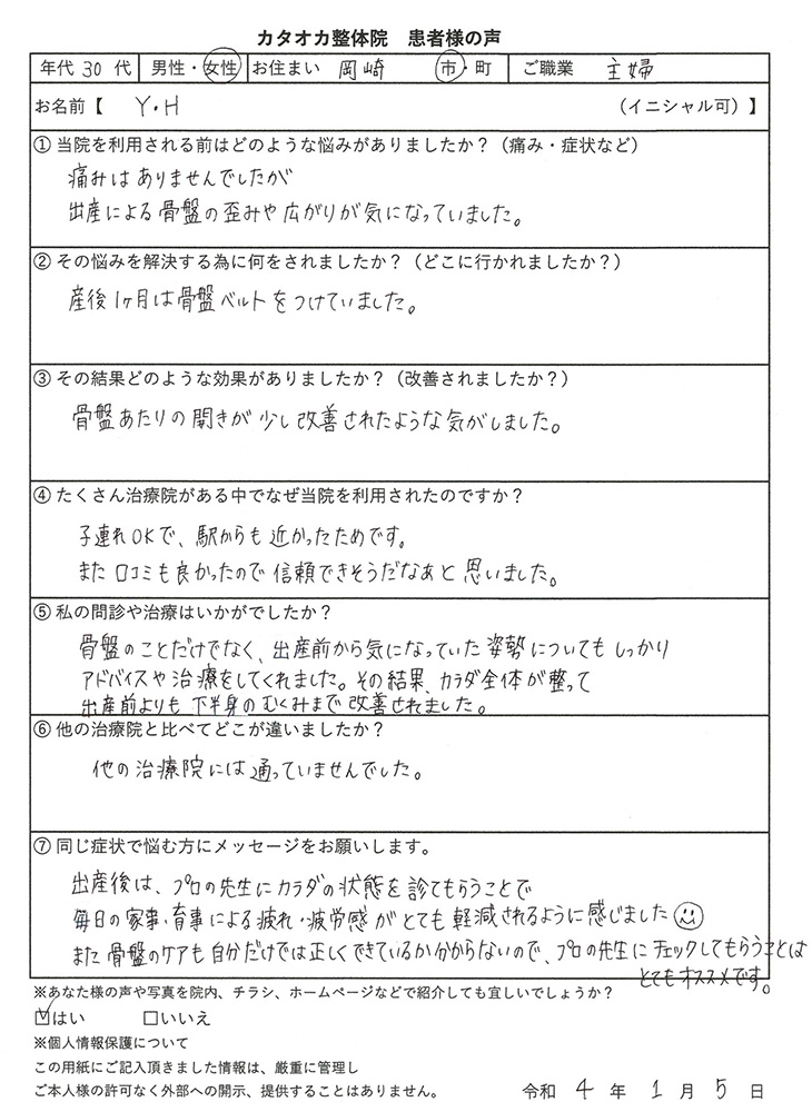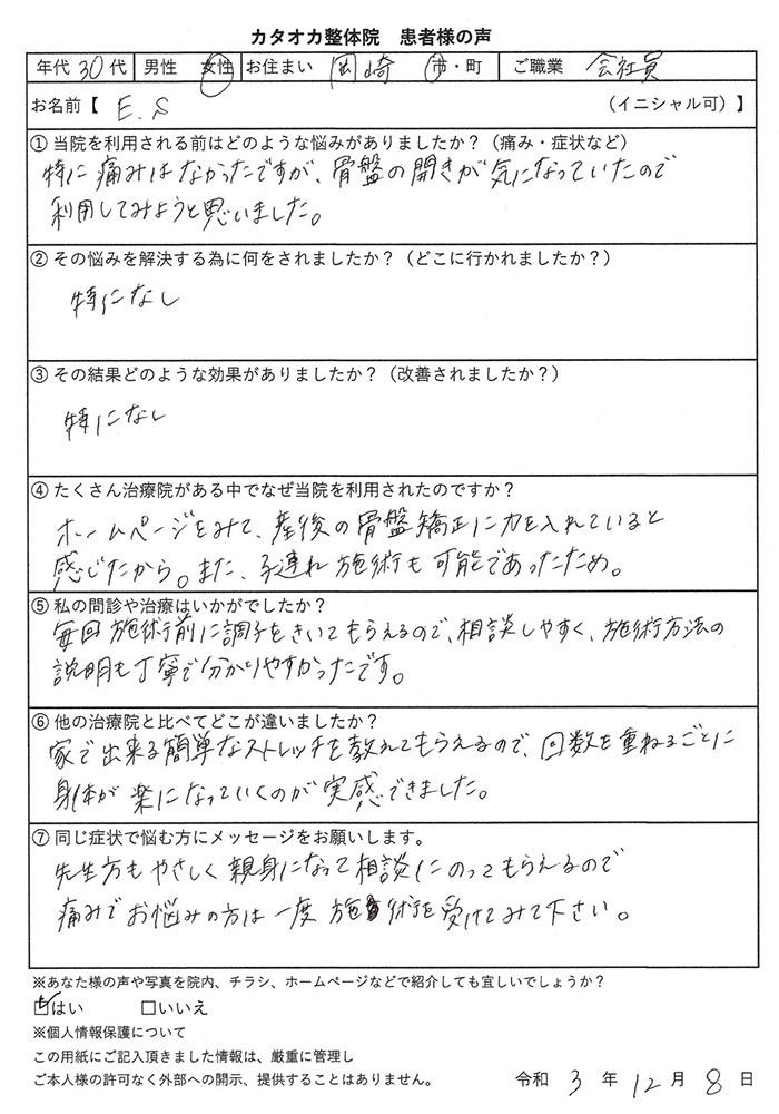 『骨盤の歪みを矯正したい』と、一歩踏み出してくださった勇気。
